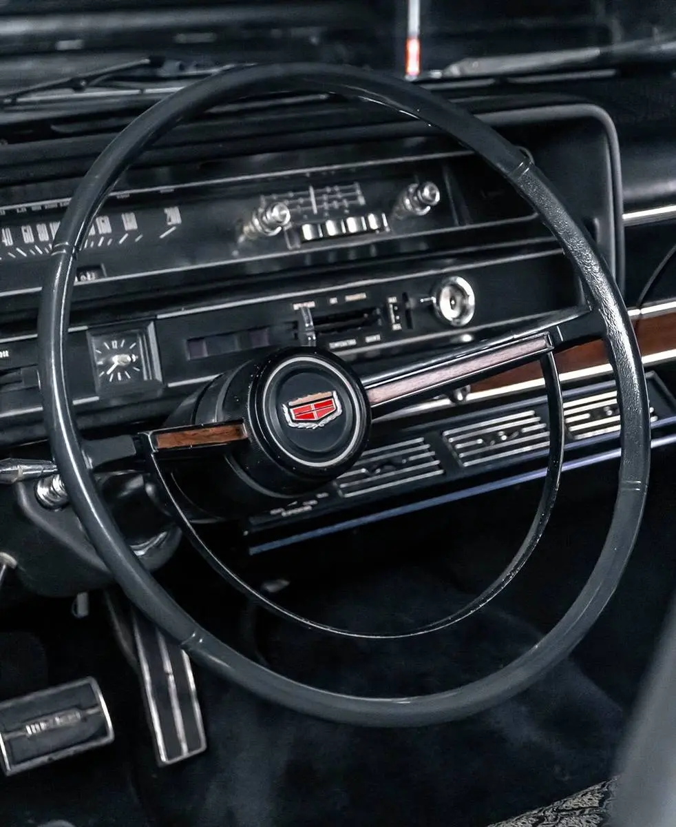 ترکیب چرم سیاه، پارچه نفیس ژاکارد و تهویه مطبوع، کابین فورد لاندو ۱۹۷۶ را به تعریفی اصیل از تجمل در دهه ۷۰ میلادی تبدیل کرده است.