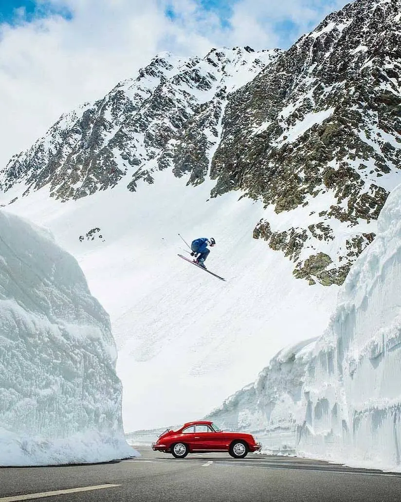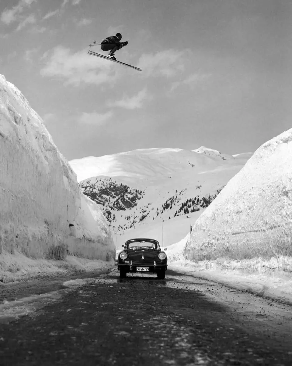 تصاویر؛ پرش دیوانهوار قهرمان اسکی از روی پورشه